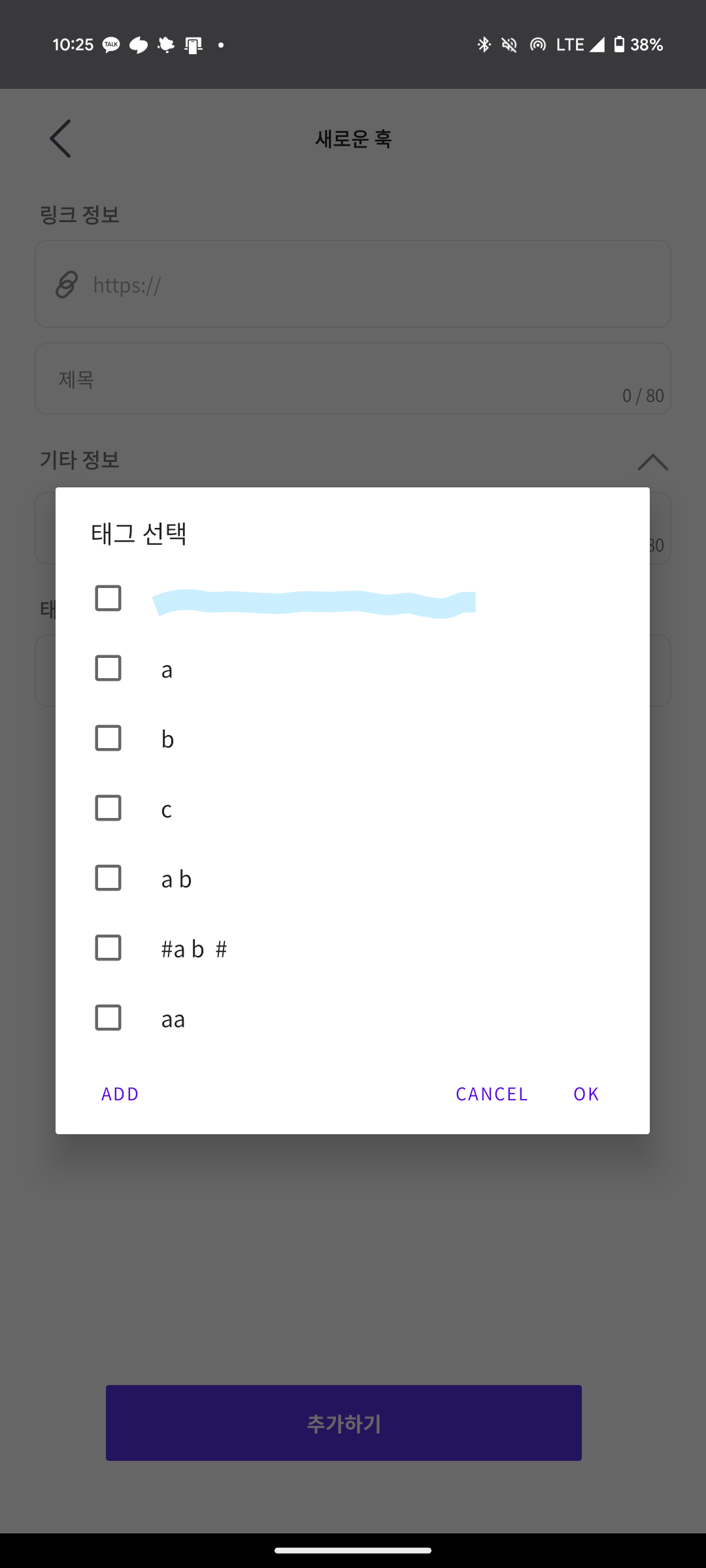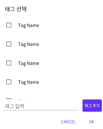 아무튼 태그 창을 클릭하면 dialog가 나오고 태그를 선택할 수 있고, ADD버튼을 누르면 새로운 태그를 추가하는 방식이었다. material Design의 builder을 이용해서 간단하게 구현하였는데