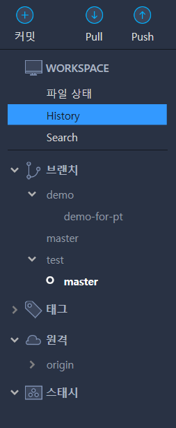 테스트 안에 work안에 hanto 브랜치가 생성 됨.