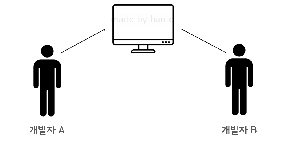 여기 개발자 A와 B가 동시에 같은 파일을 수정하고 있다고 가정하자.