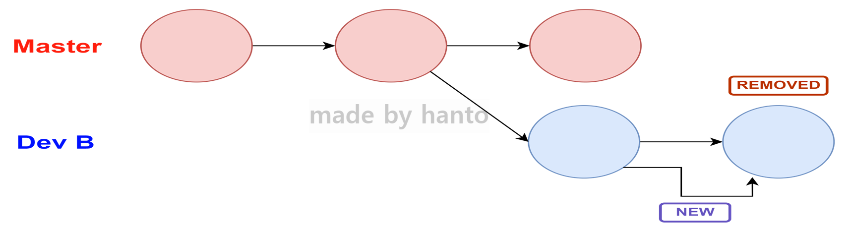 이때 개발자 B는 새로운 브랜치를 생성하고 그 브랜치에서 작업을 진행한다.