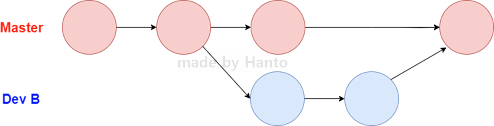 이때 개발자 B는 새로운 브랜치를 생성하고 그 브랜치에서 작업을 진행한다.