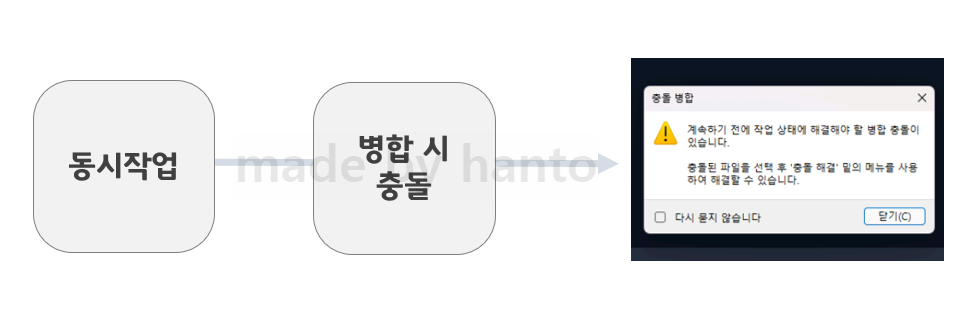 여러 사람이 동시에 같은 파일을 수정하는 경우 충돌이 발생할 수 있다.